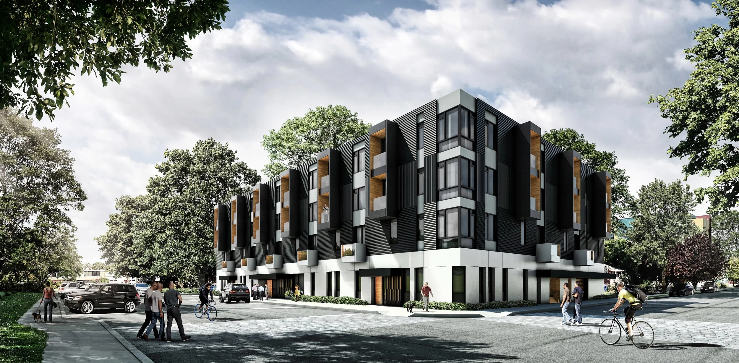 GRIT is a 43-unit apartment building proposed for a rapidly gentrifying neighborhood in a western metropolis.